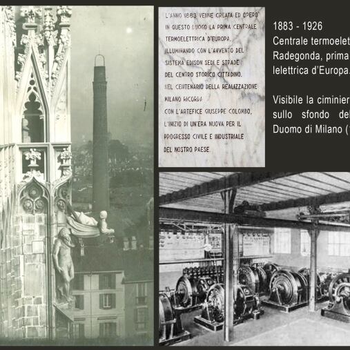 Alla fine dell'Ottocento nasce a Milano la centrale termoelettrica di Santa Redegonda, inaugurata il 28 giugno 1883 su progetto di Giuseppe Colombo; è stata la prima centrale termoelettrica italiana e la prima dell'Europa continentale, dopo le centrali di Holborn a Londra (giugno 1882) e di Pearl Street a Manhattan (settembre 1882), prima in Europa e seconda nel mondo.