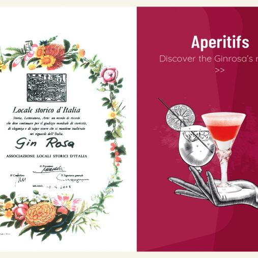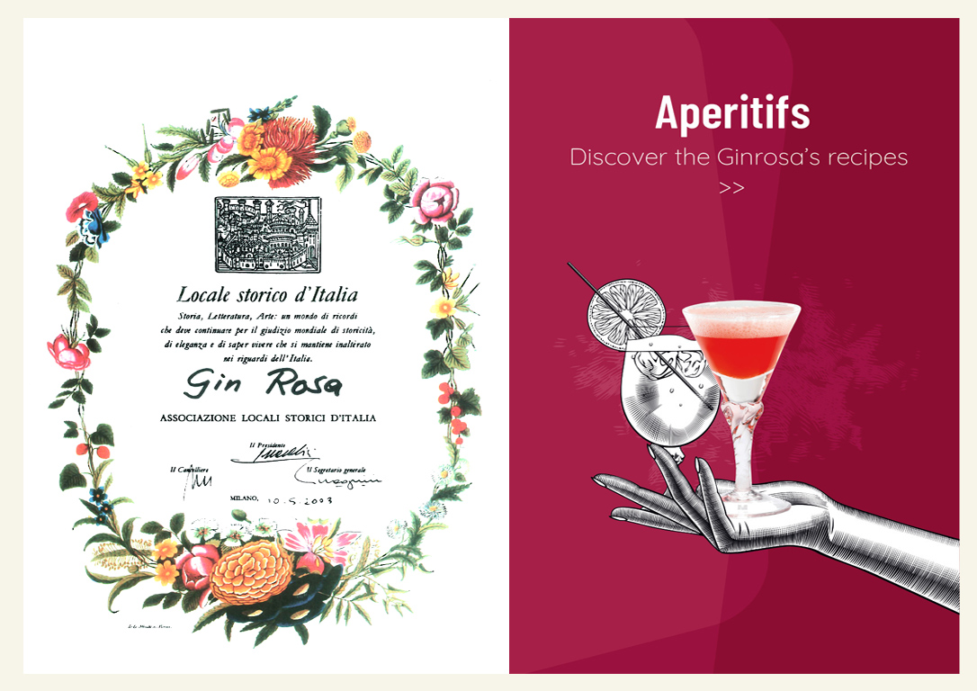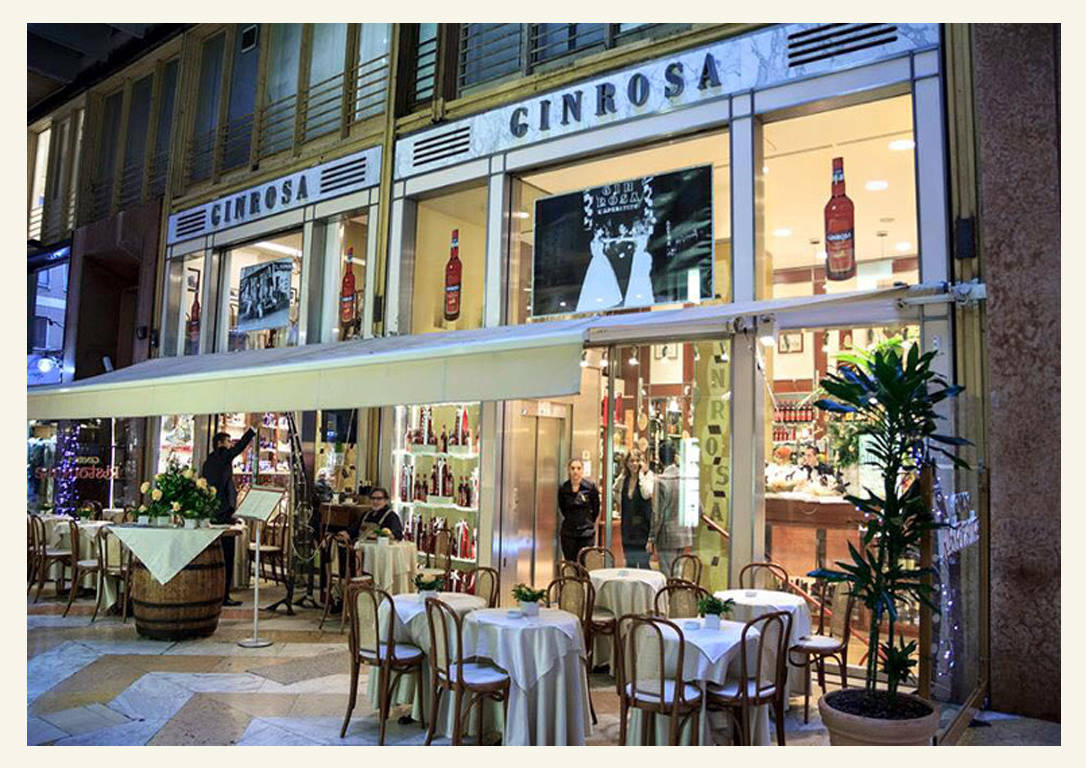 La storia dell’Aperitivo Gin Rosa va a braccetto con quella del locale Gin Rosa, locale storico della Milano da Bere che si trova in Galleria San Babila, riconosciuto nel 2004 dal Comune di Milano come Bottega storica dal 1831.