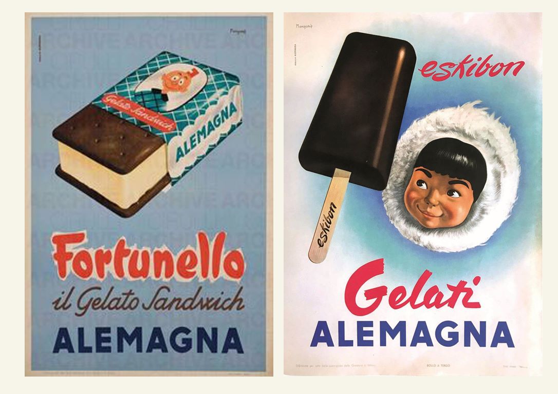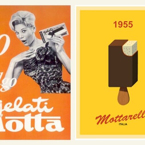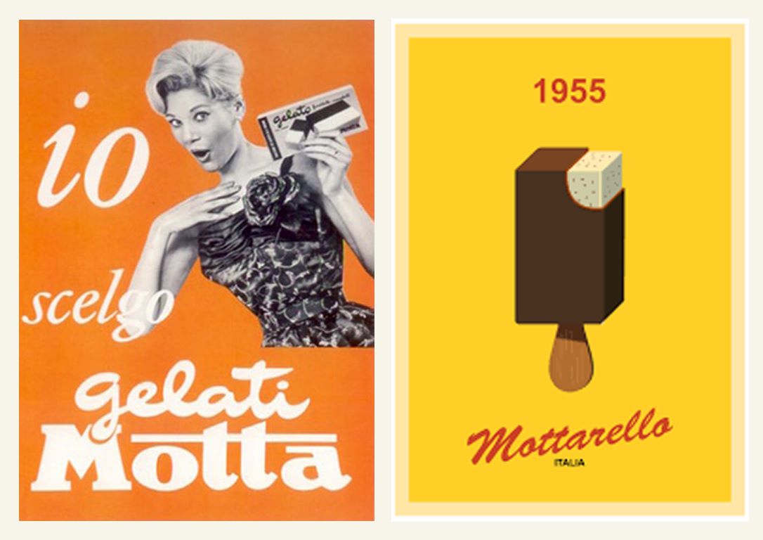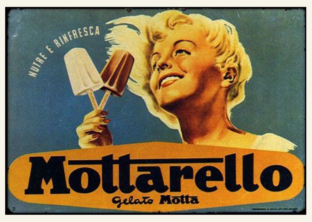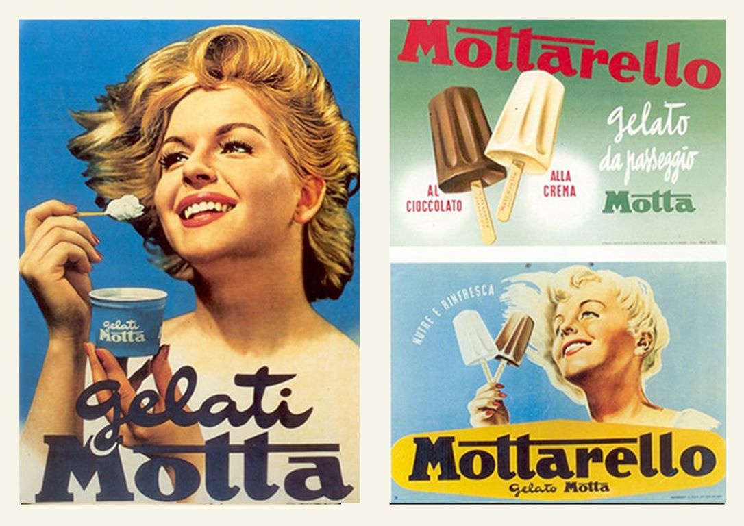 Nel 1946 Italo Barbiani e Alfred Wiesner aprono la gelateria Algida a Roma. Barbiani è trentino e Wiesner è un ingegnere austriaco ebreo che ha ricevuto in dono due macchine per fare gelati proprio per la sua collaborazione alla Resistenza. Il nome Algina ricorda a Wiesner una sua vecchia fiamma. Il primo gelato che producono è il Cremino.In tutta Italia fervono esperimenti sul tema gelato. La storia dei gelati confezionati in Italia è legata indissolubilmente a quella dei panettoni prodotti su scala industriale.Infatti dopo aver raggiunto il successo con il panettone, negli anni Trenta, nel 1948 il signor Angelo Motta inventa uno stecco al gusto fiordilatte: è il Mottarello. Nascono i gelati confezionati italiani. Comincia un’era sfavillante di bambini che fanno la fila allo stabilimento balneare per accaparrarsi un gelato cercando poi di non farselo sciogliere in mano.Le fabbriche di panettoni devono trovare un articolo per coprire il vuoto di fatturato tra Pasqua e l’autunno inoltrato.Allora Angelo Motta e i suoi collaboratori ideano il gelato da passeggio industriale. Gli italiani però sono abituati a gustare il gelato di produzione artigianale, prodotto sotto casa o al più nelle zone di villeggiatura.Il gelato, in quegli anni, non è considerato un alimento (negli anni ’50 a mala pena entra nelle statistiche alimentari con 250 grammi all’anno per persona, oggi se ne mangia quasi 5 chili per persona), come lo è, invece, per le popolazioni nord europee.Come vincere allora queste resistenze e creare un’abitudine? La pubblicità! Infatti Motta riempie di cartelloni e manifesti pubblicitari l’Italia intera dove una bionda sorridente ti affascina offrendo un Mottarello.Visto il successo del gelato Motta, subito Alemagna ne segue le orme proponendo agli italiani un gelato che sia anche un alimento e cosa di meglio di un gelato a due gusti in mezzo a due biscotti? Ecco allora il Fortunello.Gli Italiani cominciano a trovarci gusto e allora le aziende milanesi produttrici di panettoni e colombe subito ne seguono l’esempio. Così la fabbrica dolciaria di Frontini e quella di Besana cominciano a creare un settore di produzione e distribuzione di gelati, entrambe sono manifatture di panettoni, biscotti e dolci.