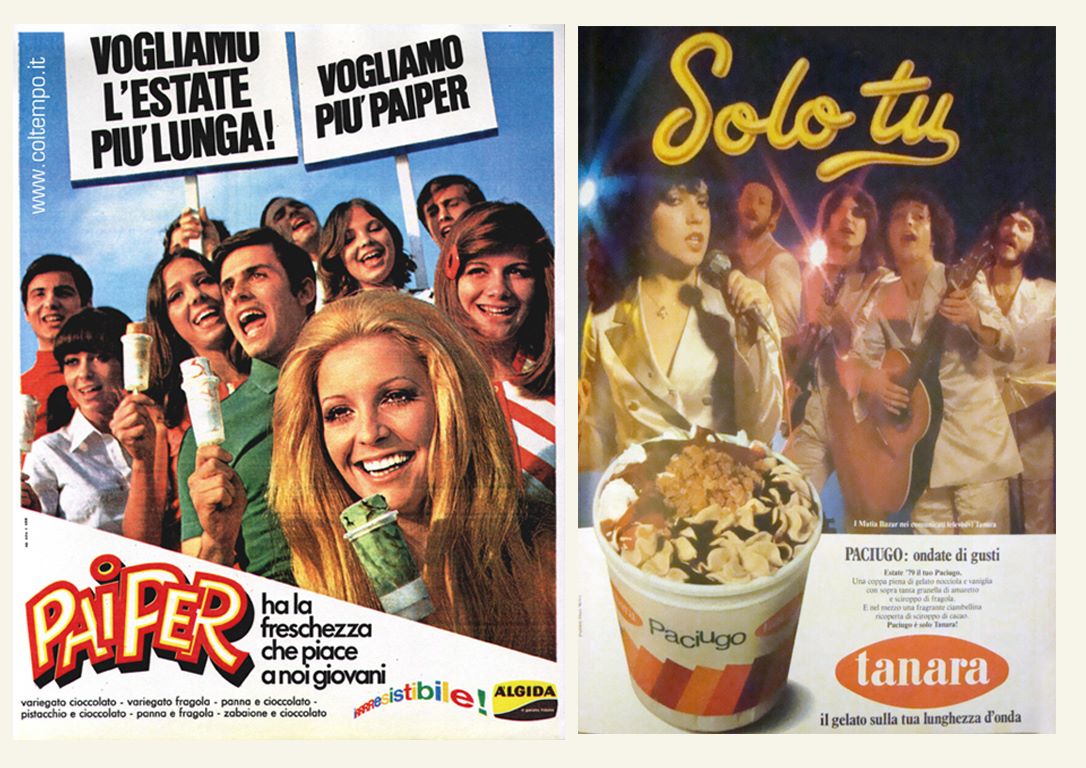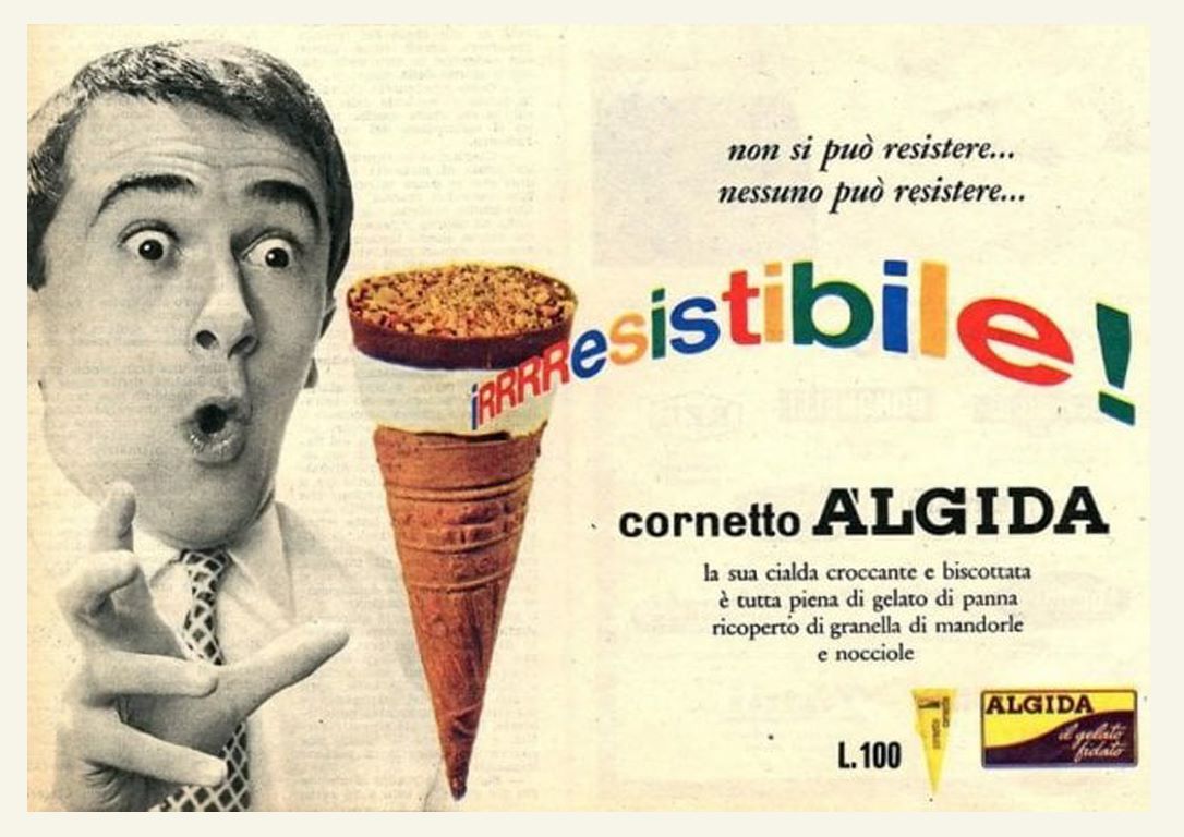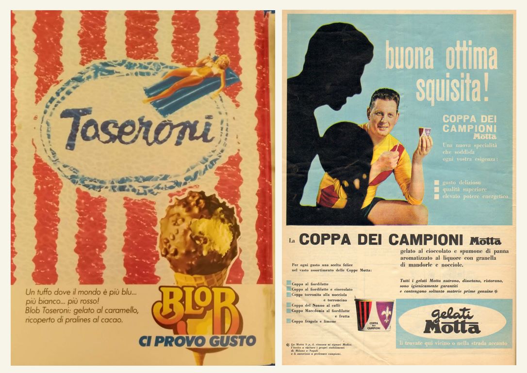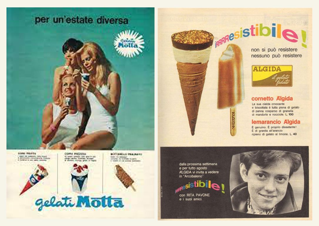 Nel 1946 Italo Barbiani e Alfred Wiesner aprono la gelateria Algida a Roma. Barbiani è trentino e Wiesner è un ingegnere austriaco ebreo che ha ricevuto in dono due macchine per fare gelati proprio per la sua collaborazione alla Resistenza. Il nome Algina ricorda a Wiesner una sua vecchia fiamma. Il primo gelato che producono è il Cremino.In tutta Italia fervono esperimenti sul tema gelato. La storia dei gelati confezionati in Italia è legata indissolubilmente a quella dei panettoni prodotti su scala industriale.Infatti dopo aver raggiunto il successo con il panettone, negli anni Trenta, nel 1948 il signor Angelo Motta inventa uno stecco al gusto fiordilatte: è il Mottarello. Nascono i gelati confezionati italiani. Comincia un’era sfavillante di bambini che fanno la fila allo stabilimento balneare per accaparrarsi un gelato cercando poi di non farselo sciogliere in mano.Le fabbriche di panettoni devono trovare un articolo per coprire il vuoto di fatturato tra Pasqua e l’autunno inoltrato.Allora Angelo Motta e i suoi collaboratori ideano il gelato da passeggio industriale. Gli italiani però sono abituati a gustare il gelato di produzione artigianale, prodotto sotto casa o al più nelle zone di villeggiatura.Il gelato, in quegli anni, non è considerato un alimento (negli anni ’50 a mala pena entra nelle statistiche alimentari con 250 grammi all’anno per persona, oggi se ne mangia quasi 5 chili per persona), come lo è, invece, per le popolazioni nord europee.Come vincere allora queste resistenze e creare un’abitudine? La pubblicità! Infatti Motta riempie di cartelloni e manifesti pubblicitari l’Italia intera dove una bionda sorridente ti affascina offrendo un Mottarello.Visto il successo del gelato Motta, subito Alemagna ne segue le orme proponendo agli italiani un gelato che sia anche un alimento e cosa di meglio di un gelato a due gusti in mezzo a due biscotti? Ecco allora il Fortunello.Gli Italiani cominciano a trovarci gusto e allora le aziende milanesi produttrici di panettoni e colombe subito ne seguono l’esempio. Così la fabbrica dolciaria di Frontini e quella di Besana cominciano a creare un settore di produzione e distribuzione di gelati, entrambe sono manifatture di panettoni, biscotti e dolci.