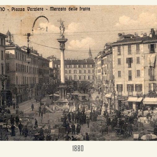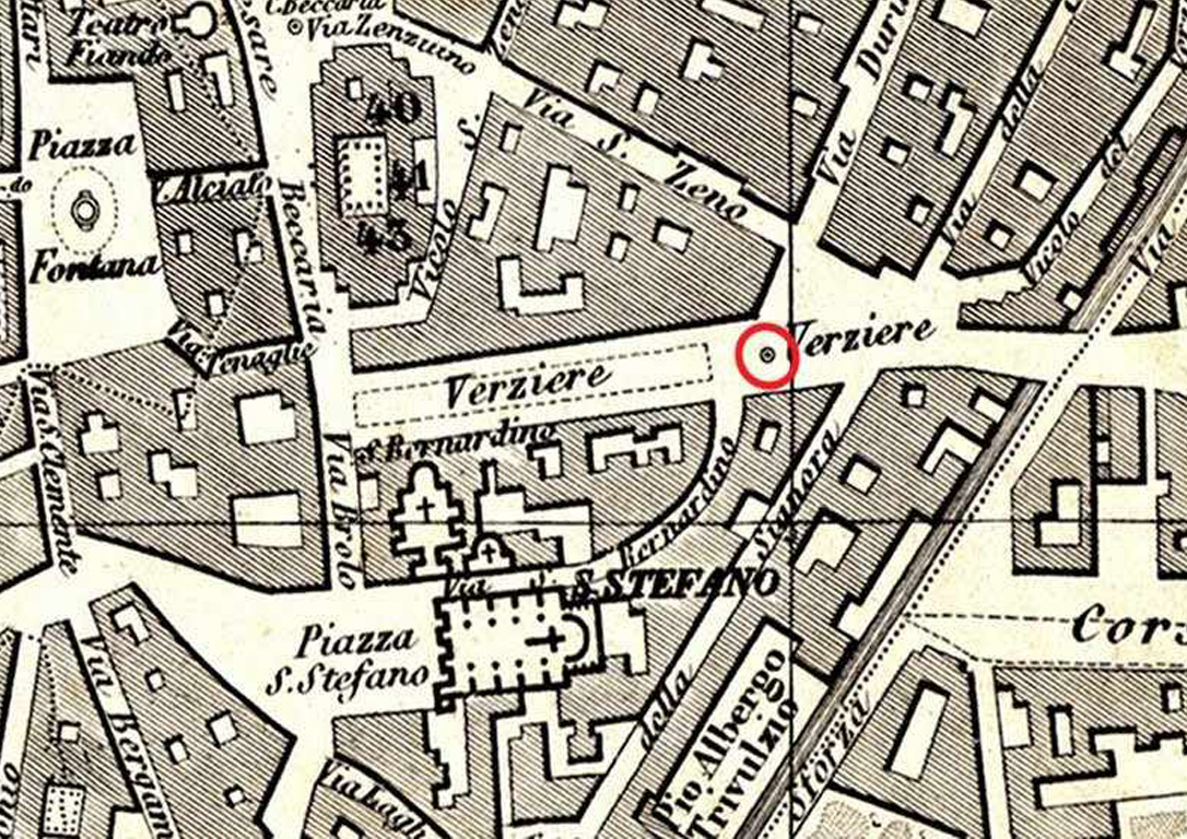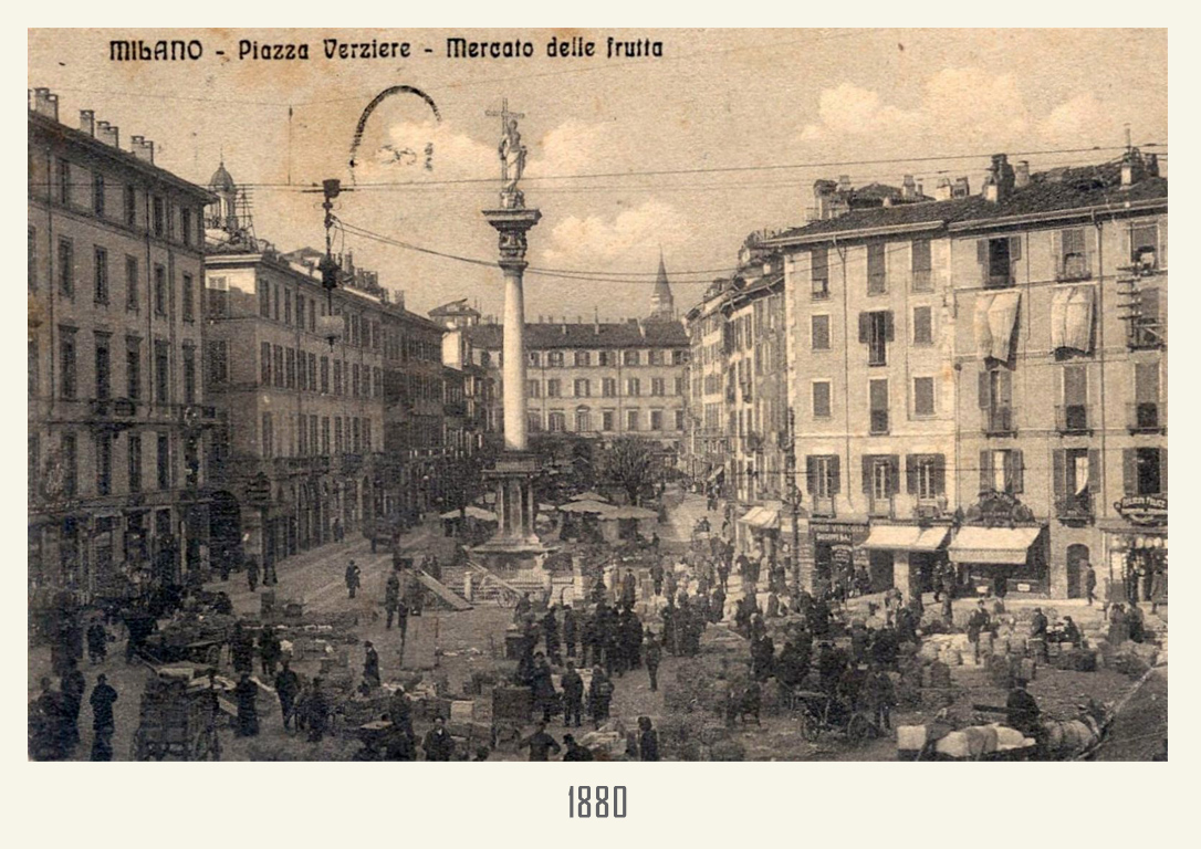 Il mercato delle verdure nella Milano medievale si concentra nell’attuale area compresa tra piazza Fontana ai piedi dell’Arcivescovado e piazza Santo Stefano. Questo fino al 1776, quando, per motivi di decoro, Karl Joseph von Firmian, ministro plenipotenziario e governatore generale della Lombardia austriaca, decide di far spostare il Verziere nella vicina piazza Santo Stefano, per permettere al l’Arcivescovado maggior lustro e sobrietà. Va precisato che già nel XIII secolo piazza Santo Stefano ospita bancarelle di generi alimentari e quindi tale spostamento costituisce in realtà un “ritorno”.