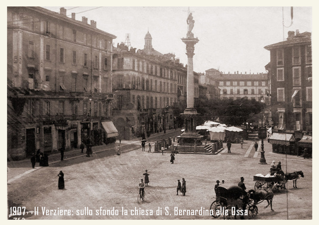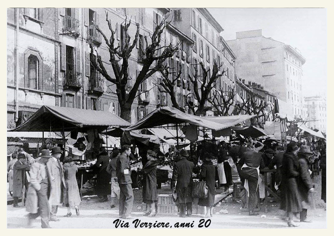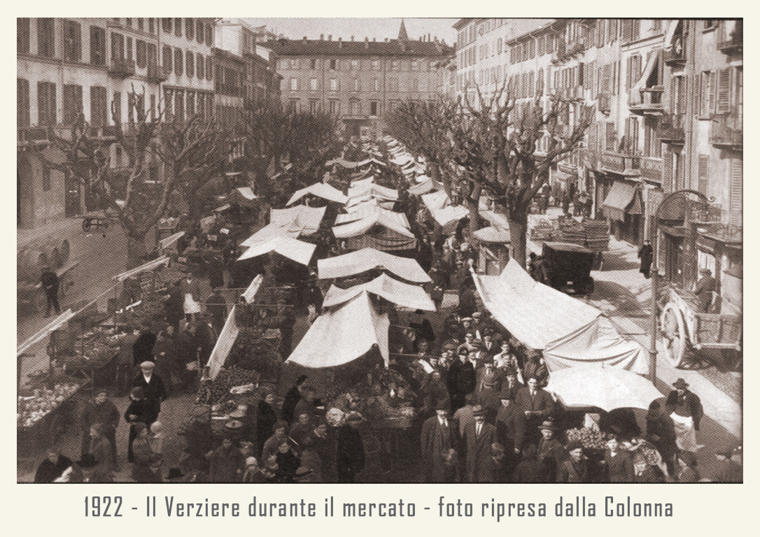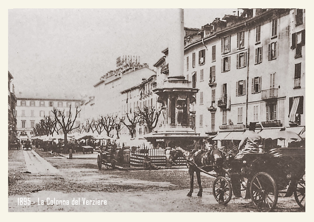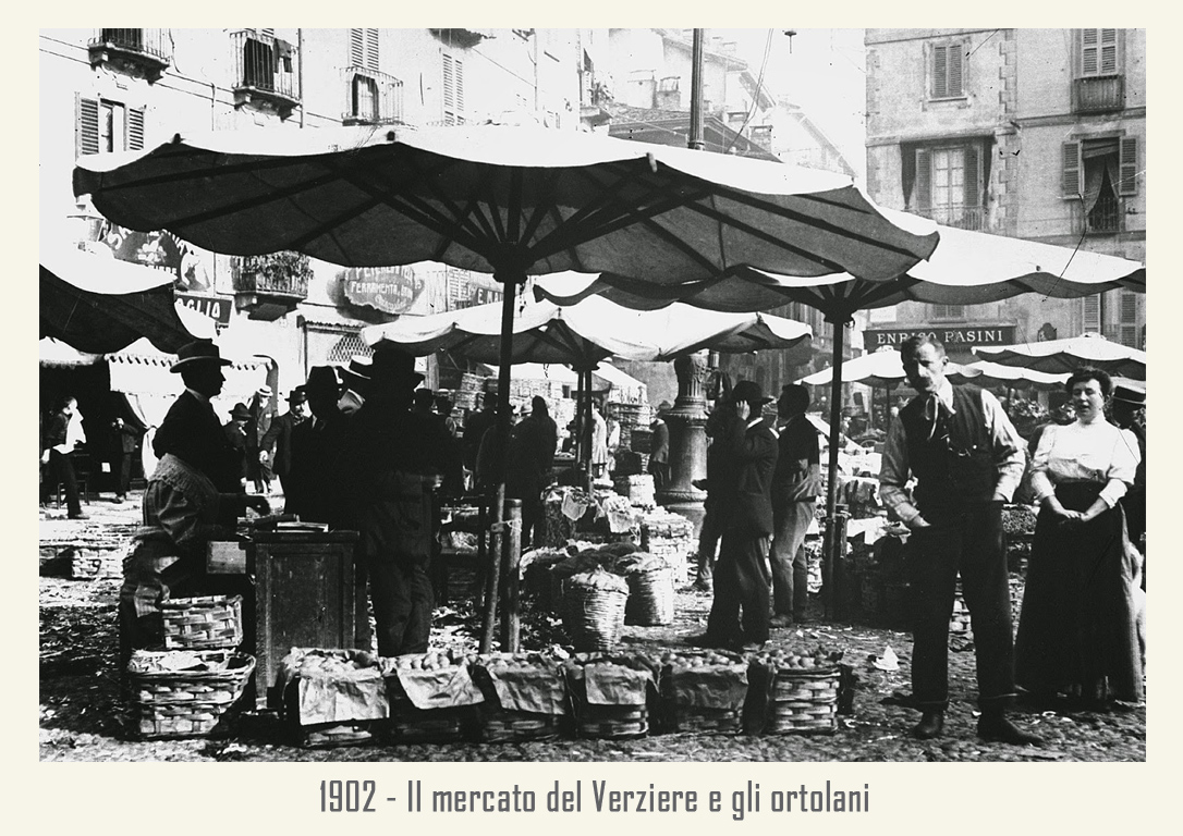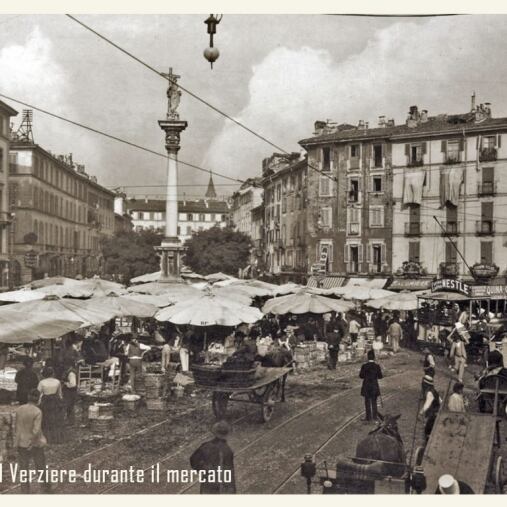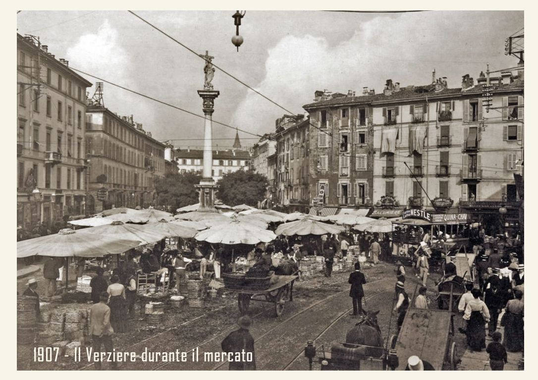 Nella seconda metà dell’Ottocento, il Verziere si allarga, occupando il suolo della larga strada che porta all’antica Porta Tosa (odierno incrocio di via Francesco Sforza e via Cesare Battisti) e alla colonna del Redentore sino all’attuale Largo Augusto. Strada che ancora oggi riporta il nome di Verziere, però senza l’indicazione “via” o altro.Qui si svolge per lungo tempo il mercato giornaliero sino a renderlo uno dei luoghi più popolari e folkloristici di Milano.
