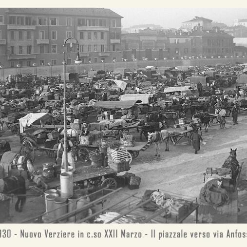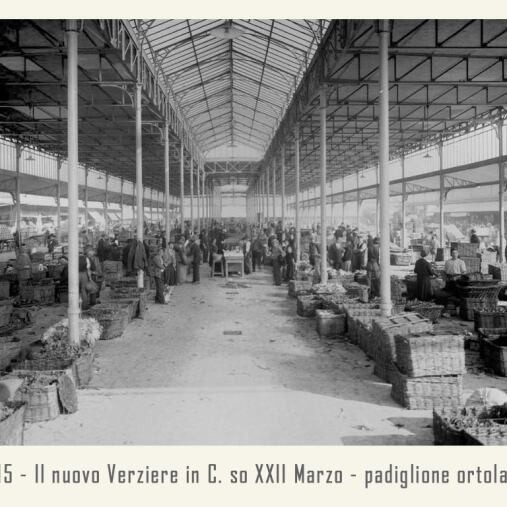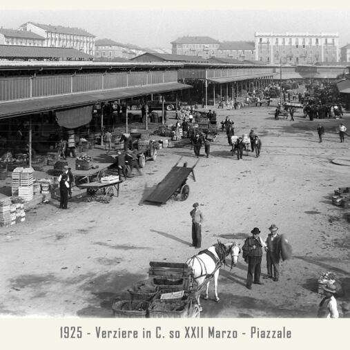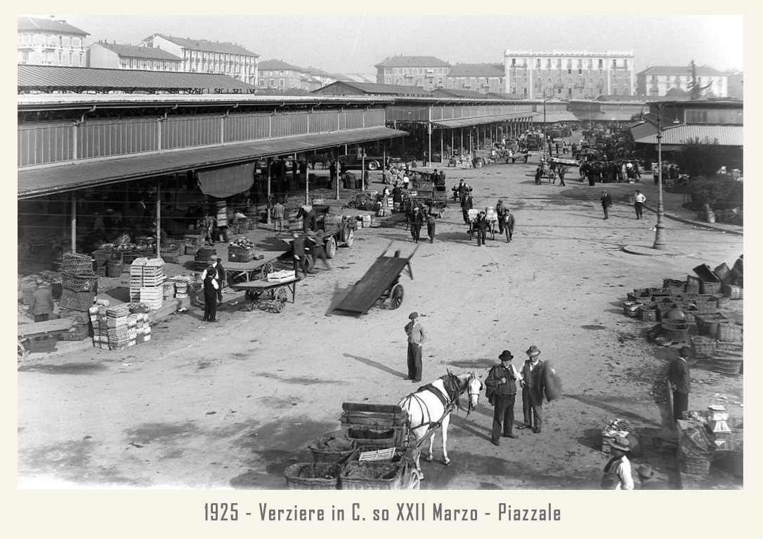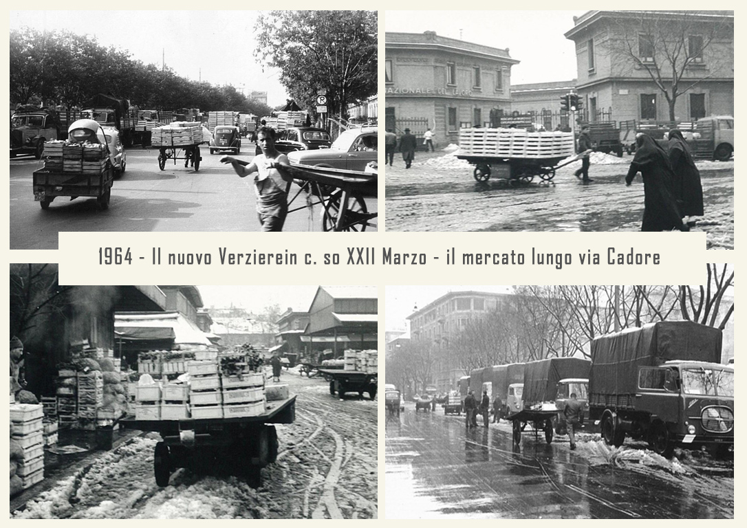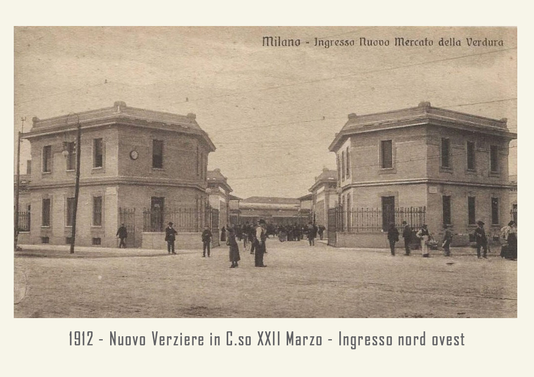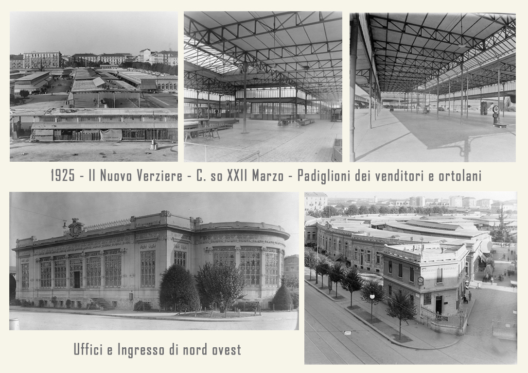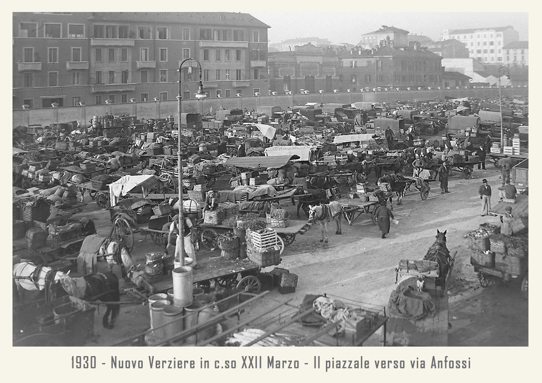 Il mercato è raccordato alle ferrovie dalla vicina stazione annonaria di Porta Vittoria. L’attività è animata da ortolani generici o specializzati, come quelli in sole patate, castagne o frutta che vengono da località allora molto rinomate: le ciliegie di Abbiategrasso, le verze e il sedano di Casalpusterlengo, i fichi della Brianza, i fagioli di Vigevano, ecc. Circa un migliaio di facchini animano le corsie del Verziere sono tutti in divisa: vestaglia a strisce verticali bianche e azzurre. Per tutti una vita decisamente faticosa, che richiede viaggi di notte, anche di 40 km in bicicletta, per arrivare al Nuovo Verziere e poi tutto il giorno a scaricare o caricare la merce, con una breve sosta a mezza mattina per rifocillarsi al bar centrale, la Palazzina Liberty appunto: trippa, cassoeula, nervetti con le cipolle e via di nuovo al lavoro.