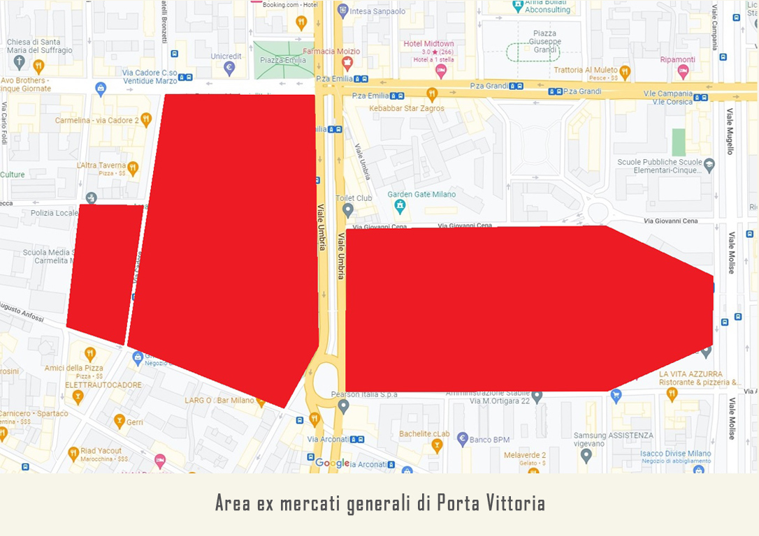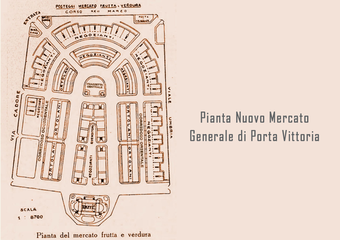 Questo sino a quando nel 1911, per esigenze di logistica, viene realizzato il nuovo e più grande Mercato ortofrutticolo, l’Ortomercato di Porta Vittoria. La grande area occupata dal vecchio Fortino Austriaco voluto da Radetzky al suo ritorno a Milano nel 1848 e ormai in abbandono da anni, viene scelta per erigere il nuovo Mercato Ortofrutticolo di Milano. In quest’area prende forma uno dei primi grandi, moderni mercati all’ingrosso d’Italia che apre alle 4 del mattino dell’11 di aprile del 1911, su progetto architettonico (1908) dell’architetto Alberto Migliorini. Si tratta di un’area recintata da una cancellata, dotata di pochi accessi, dove all’interno vengono creati vari padiglioni distribuiti a fasce circolari attorno al nucleo centrale. Secondo il progetto i padiglioni devono essere distribuiti in cerchio su ogni lato, ma ne vengono realizzati solo in parte, lasciando incompleta la sezione meridionale, che rimane utilizzata come piazzale di sosta fino alla demolizione del complesso. Perciò la palazzina centrale del caffè, oggi la famosa Palazzina Liberty, unica superstite del complesso, diventa l’ultimo padiglione nella parte meridionale anziché “centrale” come da progetto. L’area ha solo 4 ingressi posti agli angoli del quadrilatero, aperti tutti i giorni, compresa la domenica, tranne il lunedì, unico giorno di chiusura. Le aperture così limitate servono per controllare più facilmente l’ordine pubblico e la merce (altre aperture minori e per i mezzi si trovano lungo via Cadore).