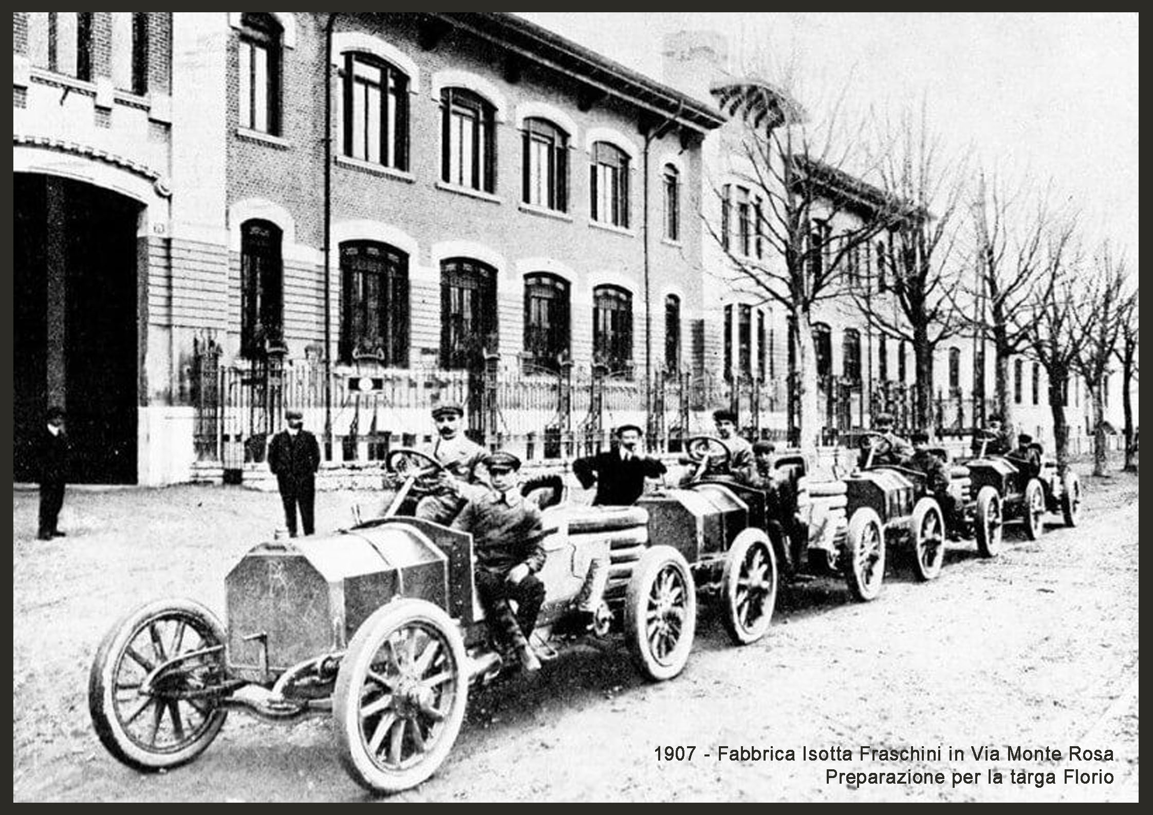 La Società Milanese Automobili Isotta, Fraschini e C. nasce a Milano il 27 gennaio del 1900 grazie a Cesare Isotta e ai fratelli Vincenzo, Oreste e Antonio Fraschini: i fondatori danno il nome a quella che sarebbe diventata presto una delle marche di vetture più richieste al mondo. La società nasce con l’intento di diffondere l’utilizzo dell’automobile mediante la vendita tanto che il motto della neo società è “importare, vendere e riparare automobili”.