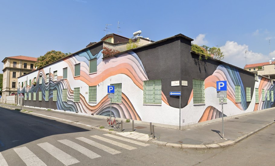 Dai muri grigi di una ex fabbrica dolciaria alle onde colorate di '1010', uno street artist tedesco di fama mondiale. Sono 800 metri quadri di pareti di un palazzo basso ritmato da numerosi finestroni tra via Isimbardi e via Barrili, nel cuore del quartiere Stadera a Milano. "I proprietari non volevano semplicemente rifare la facciata, ma proporre arte sulla strada", spiega Alice Cosmai, curatrice dell'opera per la galleria Question Mark. Daniele Decia, fondatore di Question Mark, racconta che i proprietari dell’immobile di via Barrili hanno voluto proprio ‘1010’ perché, giocando con i colori e le sfumature, è capace di "dare movimento e sinuosità a un'architettura di questo tipo", sfumando con l'aerografo i confini tra una linea e l'altra e "Creando un gioco prospettico in cui si sfonda la superficie del muro e si va verso altre dimensioni".