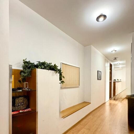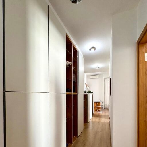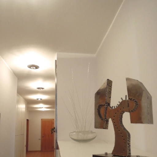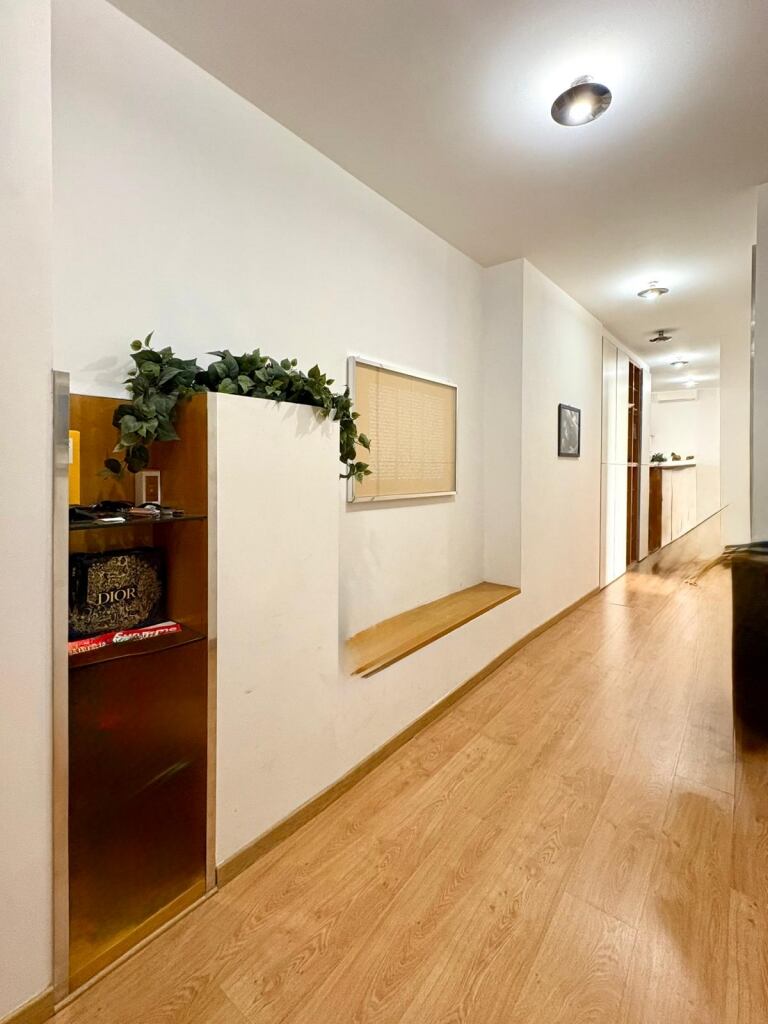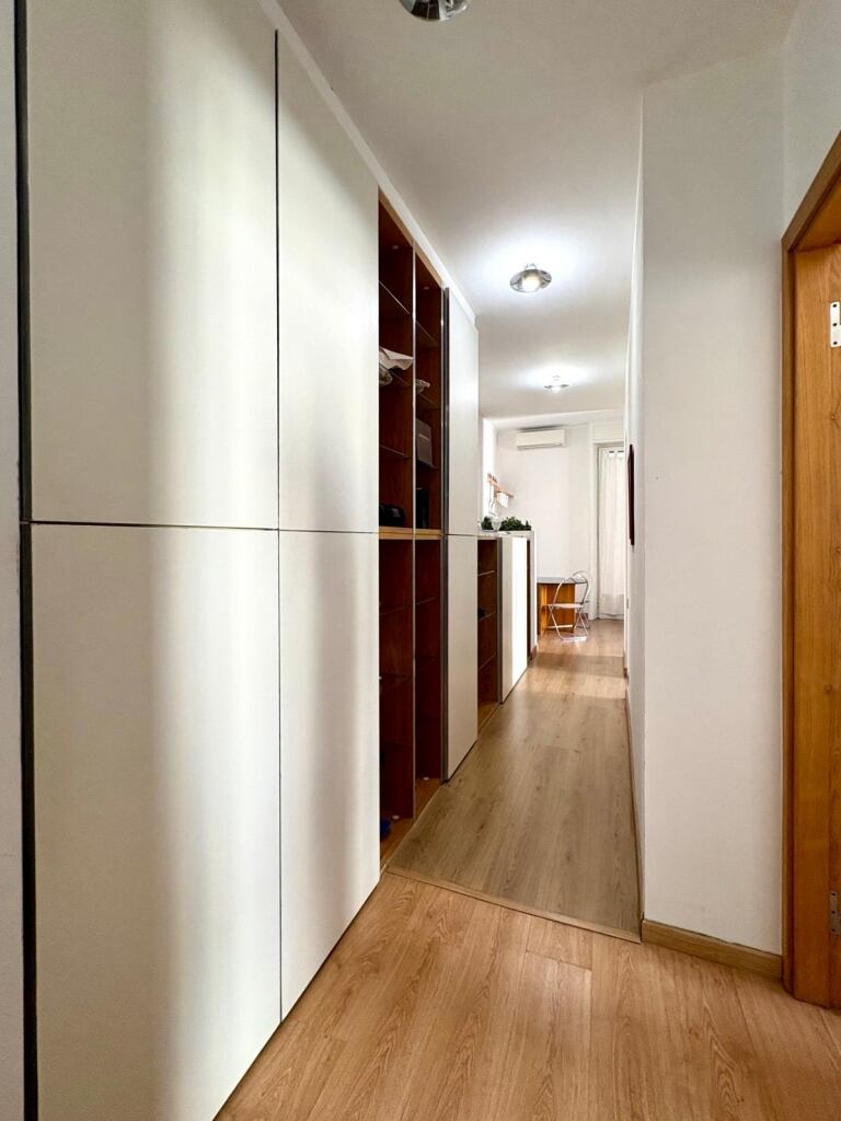 L'ingresso è caratterizzato da una boiserie in legno chiaro che integra ampie armadiature su misura a scomparsa; le nicchie a specchio e i faretti a incasso donano profondità e luminosità immediata. Il living ospita armoniosamente sia l'area relax che la zona pranzo, mentre la cucina è separata, funzionale e dotata di piano a induzione. La zona notte comprende una camera padronale con bagno en-suite e un secondo locale, ideale come studio/smart working o camera per gli ospiti; presente inoltre un ulteriore bagno ad uso lavanderia, estremamente pratico.