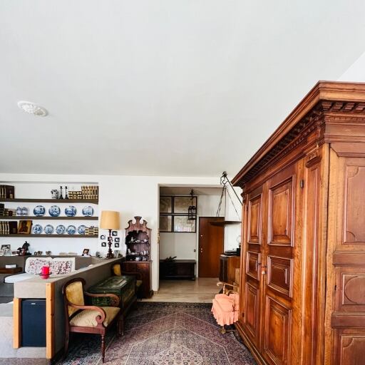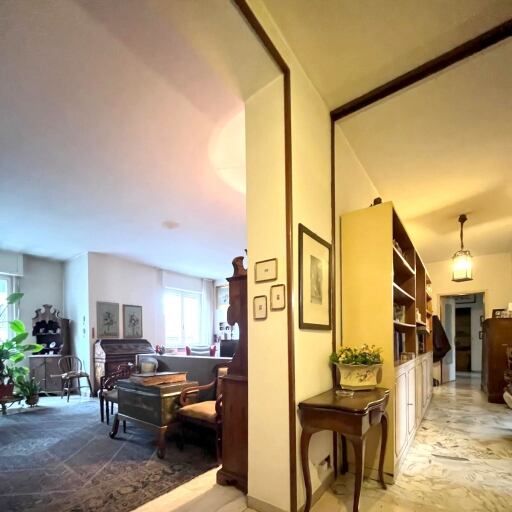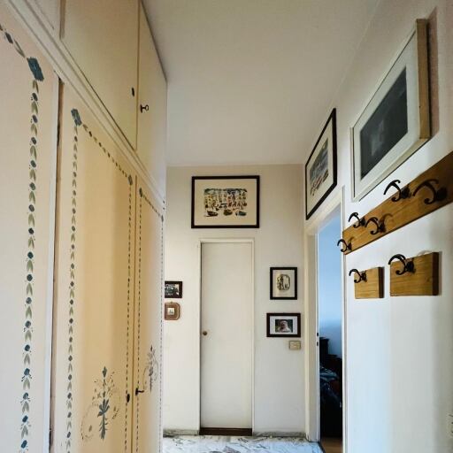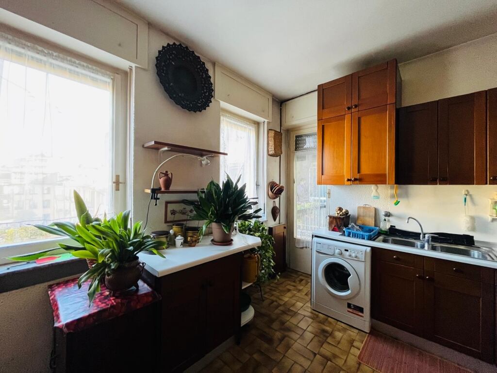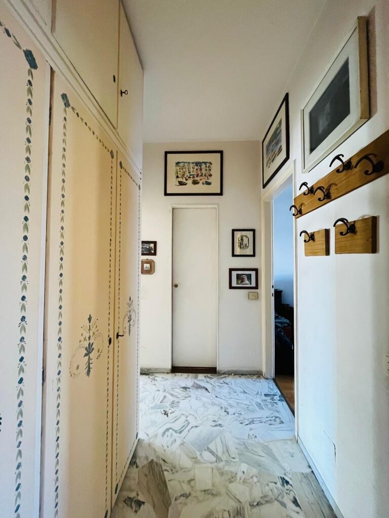 La composizione interna è ottimale: ingresso, soggiorno doppio, grande cucina abitabile illuminata da tre finestre e dotata di balcone, tre camere matrimoniali di cui una con balcone, una camera singola, due bagni con finestra e ripostiglio. Gli ambienti sono disimpegnati da un corridoio centrale, perfetto per armadiature. Due balconi.